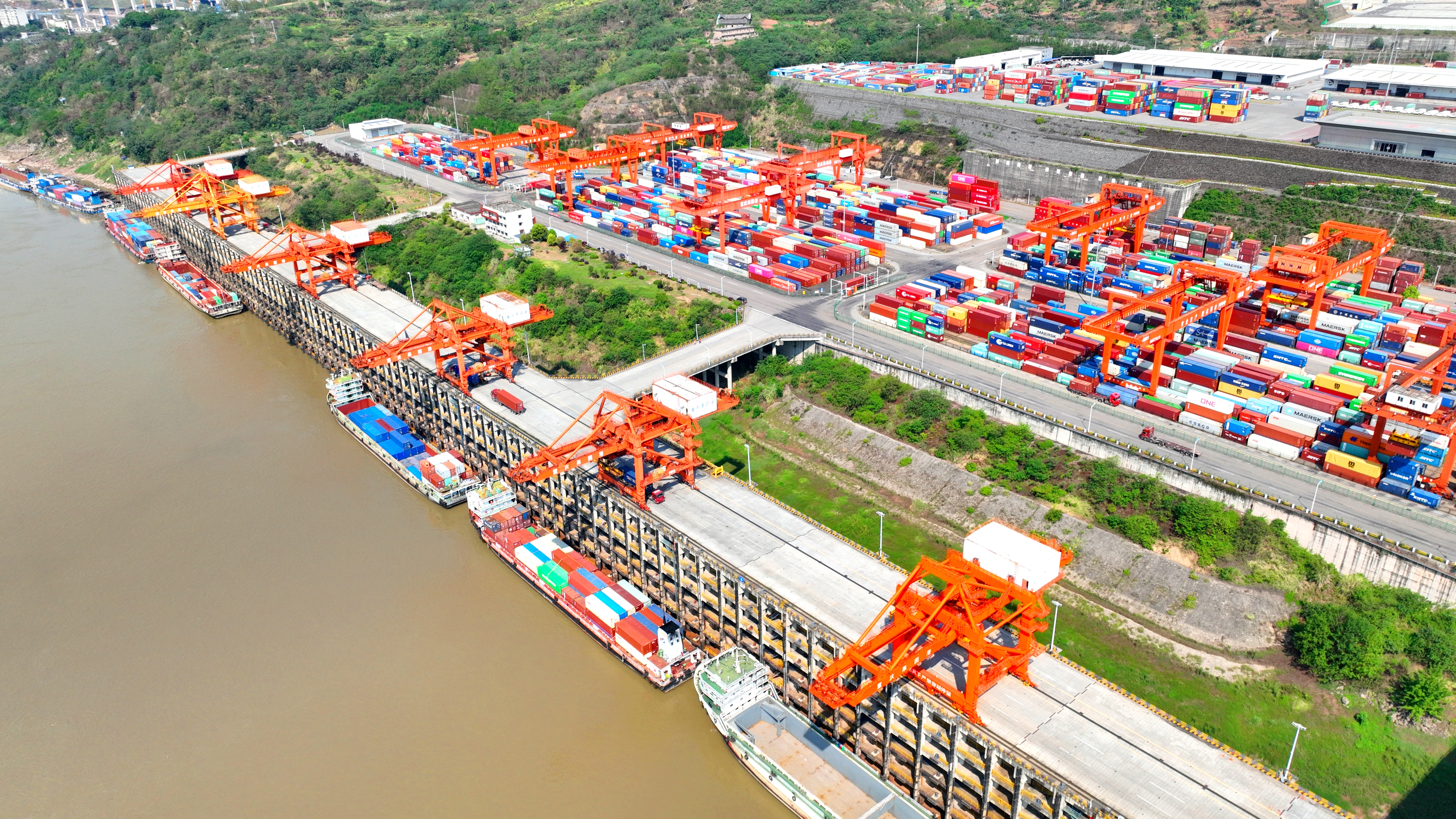 重慶港擁有分公司2戶、全資及控股二級企業(yè)12戶、參股二級企業(yè)3戶,主要經(jīng)營管理重慶市內(nèi)重點(diǎn)公共港口碼頭。目前已形成集裝箱、件雜散貨、商品車和化工等現(xiàn)代化、專業(yè)化碼頭集群,年貨物吞吐能力近7000萬噸、集裝箱吞吐能力267萬TEU;擁有果園港、萬州紅溪溝、江津蘭家沱和珞璜港4個鐵水聯(lián)運(yùn)港區(qū),鐵路專用線49公里,鐵路年作業(yè)能力3100萬噸。
